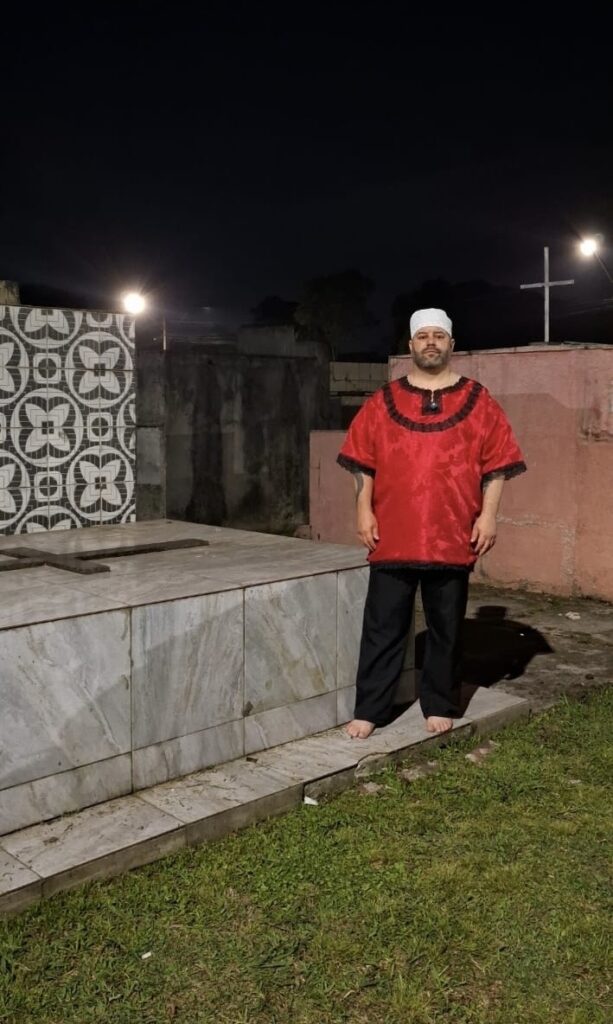 “Na Quimbanda, Exu é o senhor dos caminhos da noite, um espírito livre e magístico, que trabalha com o poder cru da natureza e do desejo humano. Ele não é anjo nem demônio — é uma força ancestral, que domina o fogo, o tempo e o destino. Aqui, Exu cobra, ensina, transforma e exige postura”, completa o sacerdote.